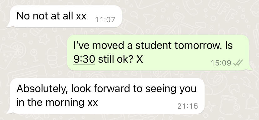 So imagine my surprise when on Monday morning, I was dyeing my hair, and when I had finished I saw two missed calls from Anita at 10:07, one on my phone and one on WhatsApp. Wtf?! She’d left a voicemail asking me where I was? Apparently she was expecting me.