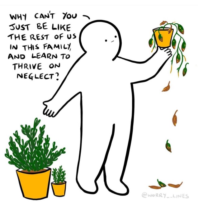Another thing that was there throughout my therapy was a sick-looking spiky houseplant that was in good need of a repot and feed. Bearing in mind I saw Em for three years that poor plant never got any care and looked like it was at death’s door the whole time. Now, sure, it’s only a plant, but I think as a therapist if you are going to put plants in the room make sure they look healthy. If you can’t look after a plant, how will you care for your clients?!