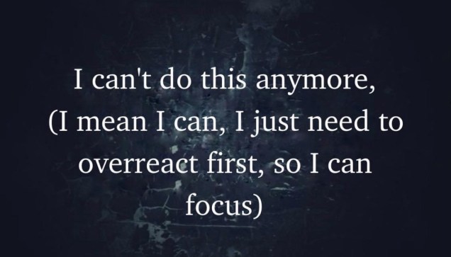 So, what’s caused the utter chaos in my system this time? – You know, aside from my being fucking mental?!